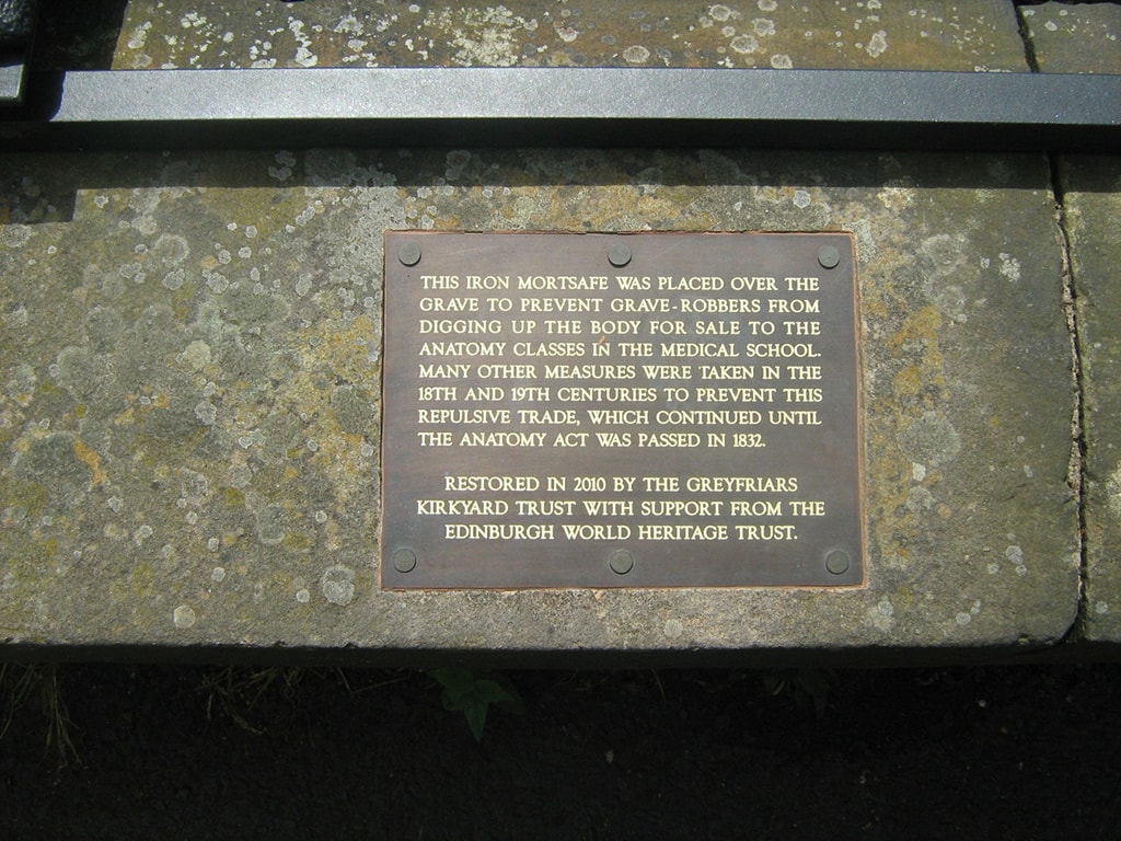 Чтобы сделать ночной дозор максимально комфортным для кладбищенских смотрителей возводили отдельные сооружения. Например, на кладбище в Эдинбурге и сегодня еще можно увидеть смотровую башню в виде средневекового замка. Но все эти усилия не могли прекратить расхищения могил, тогда в 1816 году был придуман могильный сейф - mortsafe (от французского «mort» - смерть).