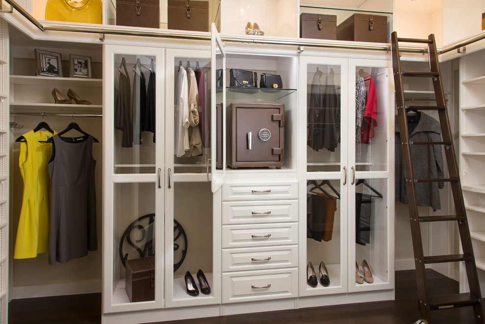 Благодаря своей малопроходимости гардеробная комната - одно из самых подходящих мест для установки сейфа. Сюда редко заглядывают посторонние люди и поэтому здесь сейф хорошо скрыт от чужих глаз. Разберем подборку интересных дизайнерских решений по размещению сейфа в гардеробной.