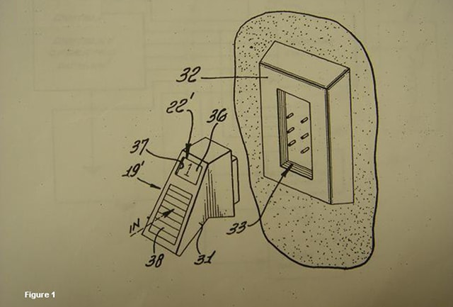 21 мая 1974, Гартнер получил свой первый патент (рис.1) - на кодовый электронный замок с LED клавиатурой, который стал предшественником всех современных электронных замков. В конструкции использовались светодиоды, поскольку небольшие LCD дисплеи тогда еще не были так доступны и распространены, как сегодня. Кодовая комбинация набиралась с помощью единственного переключателя (номер 38 на чертеже) - перемещая его вверх или вниз, пользователь задавал нужные цифры, которые последовательно выводились на LED экране. И хотя сейчас эта технология кажется примитивной, для своего времени она стала настоящим прорывом. Миллер был настолько впечатлен, что S&G заключили с Гартнером лицензионное соглашение и подписали контракт на разработку новых сейфовых замков и систем контроля доступа.