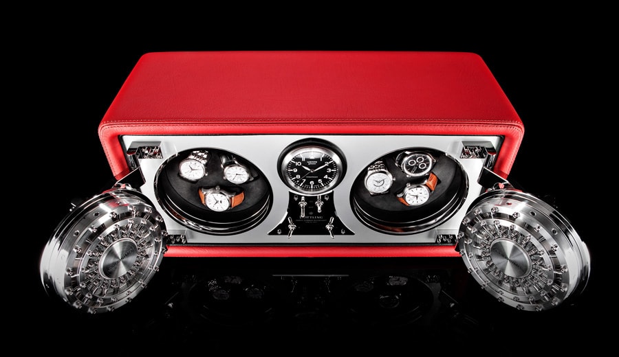 После ввода трехзначного персонального кода срабатывает сложный запирающий механизм, створки сейфа распахиваются и открывают взору два прецизионных ротора, каждый из которых элегантно вращает по три модели часов. В некотором смысле можно сказать, что сейф Colosimo Double Wing совмещает в себе традицию и инновацию, что является обязательным условием для любого изобретения, претендующего на статус "легенды".